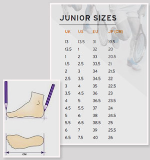 *** таблица размеров кроссовок Head Sprint Velcro 2.5 Kids